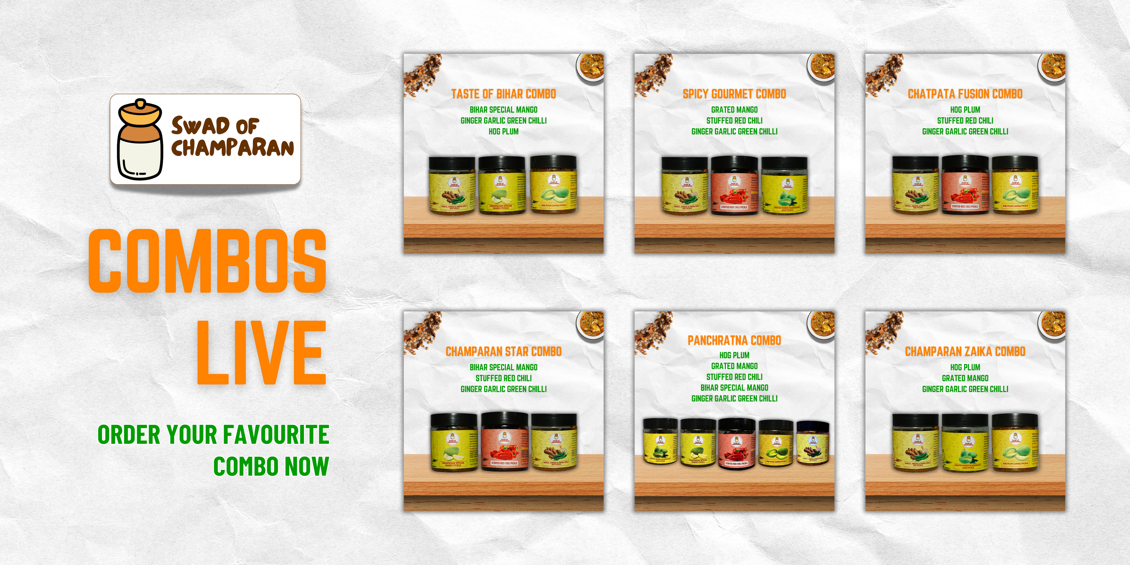 • Champaran Star combo (Mango, Ginger Garlic Green Chilli, Stuffed Red Chilli)
