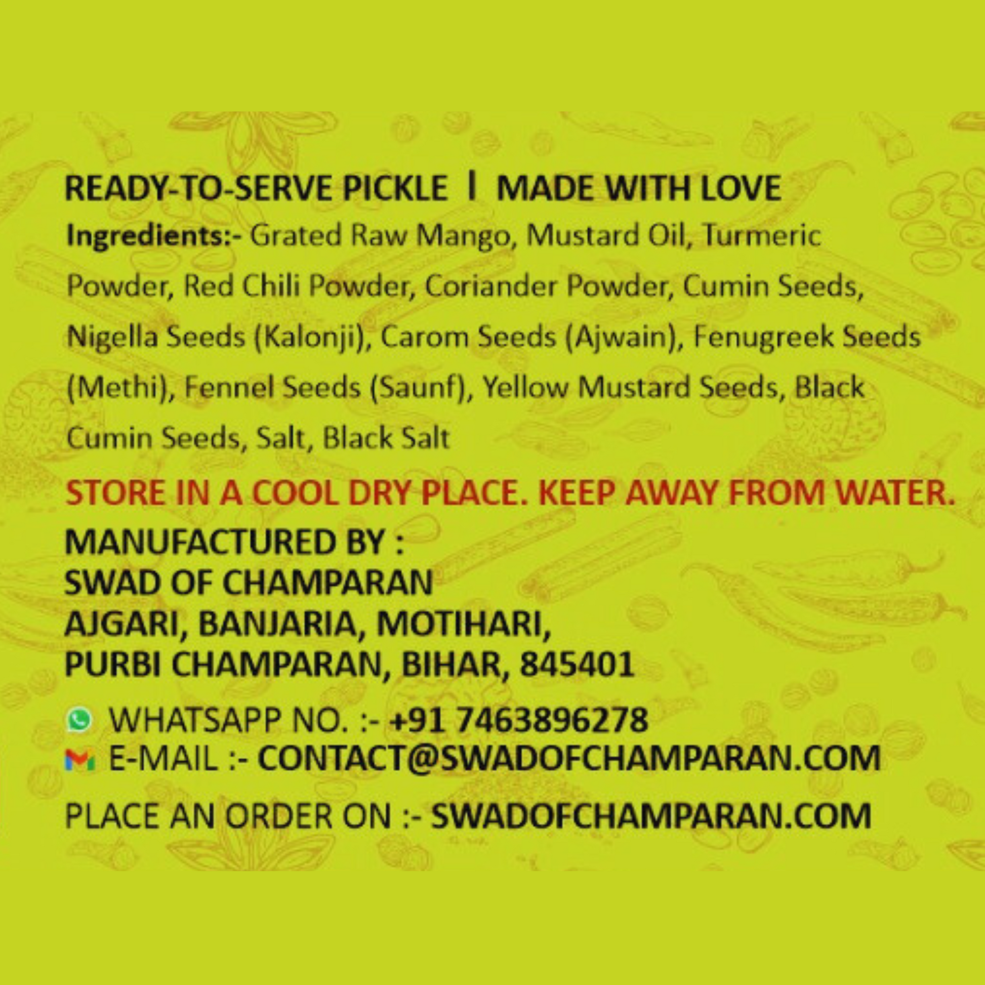 Experience the authentic taste of traditional Indian cuisine with our Grated Mango Pickle (Kaddukash Aam Ka Achar). Crafted from freshly grated raw mangoes and blended with a carefully balanced mix of mustard oil, turmeric, red chili, coriander, and an array of aromatic seeds including cumin, nigella, carom, fenugreek, fennel, yellow mustard, and black cumin seeds. Enhanced with both black and regular salt, this pickle offers a complex, tangy, and spicy flavor profile that complements any meal, adding depth and richness to your dining experience.